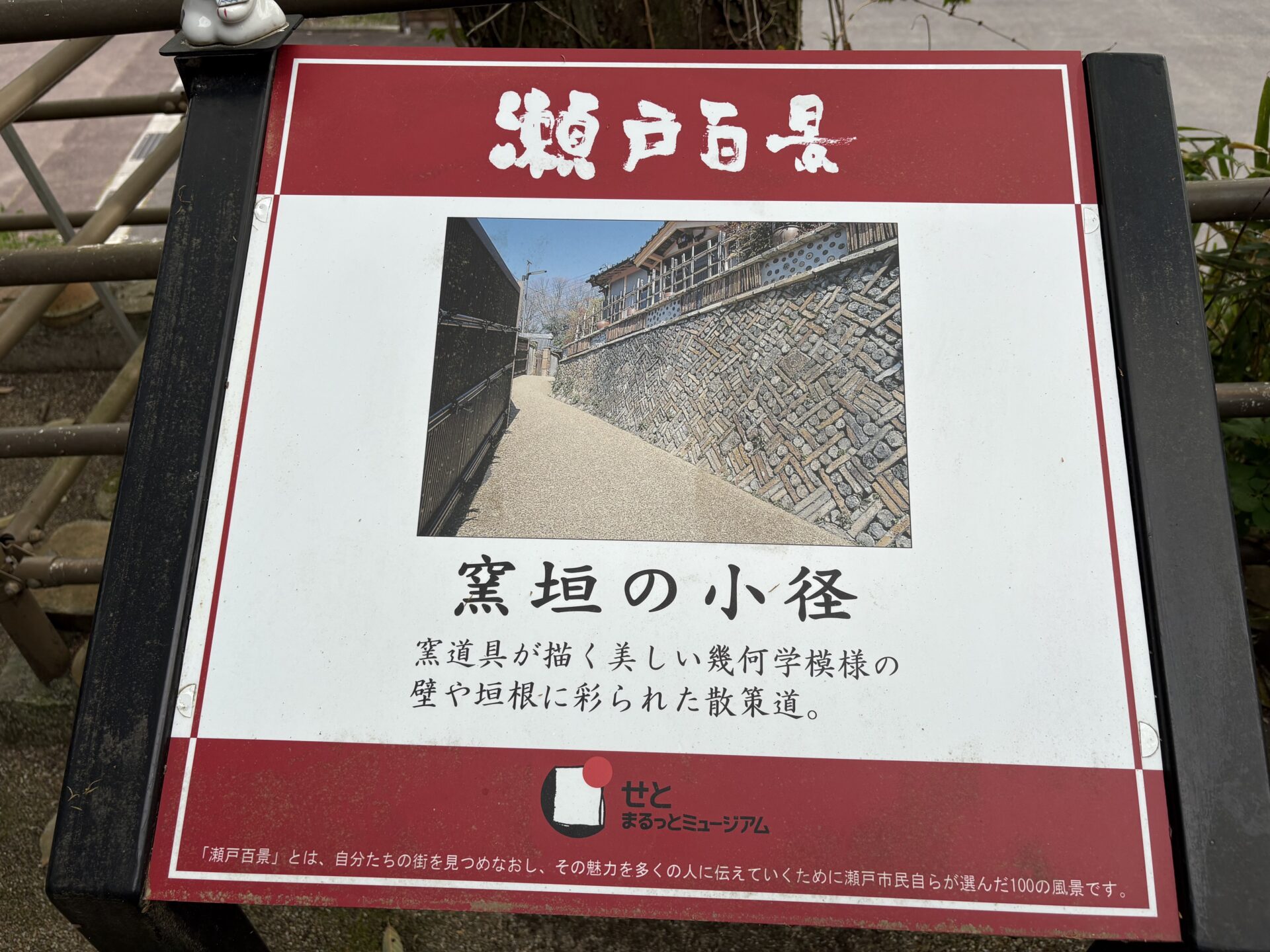 尾張瀬戸駅から徒歩で約20分ほど、街外れには「窯垣の小径」という遊歩道があります。